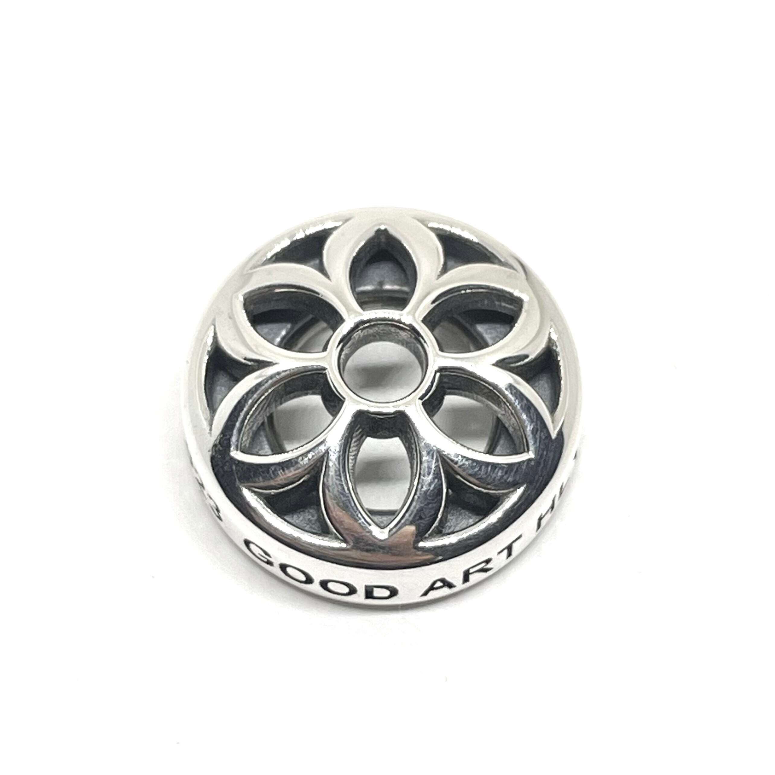トップ部分にセットされたロゼットモチーフのスターリングシルバー製のパーツはスナップ式になっていて取り外しが可能です。